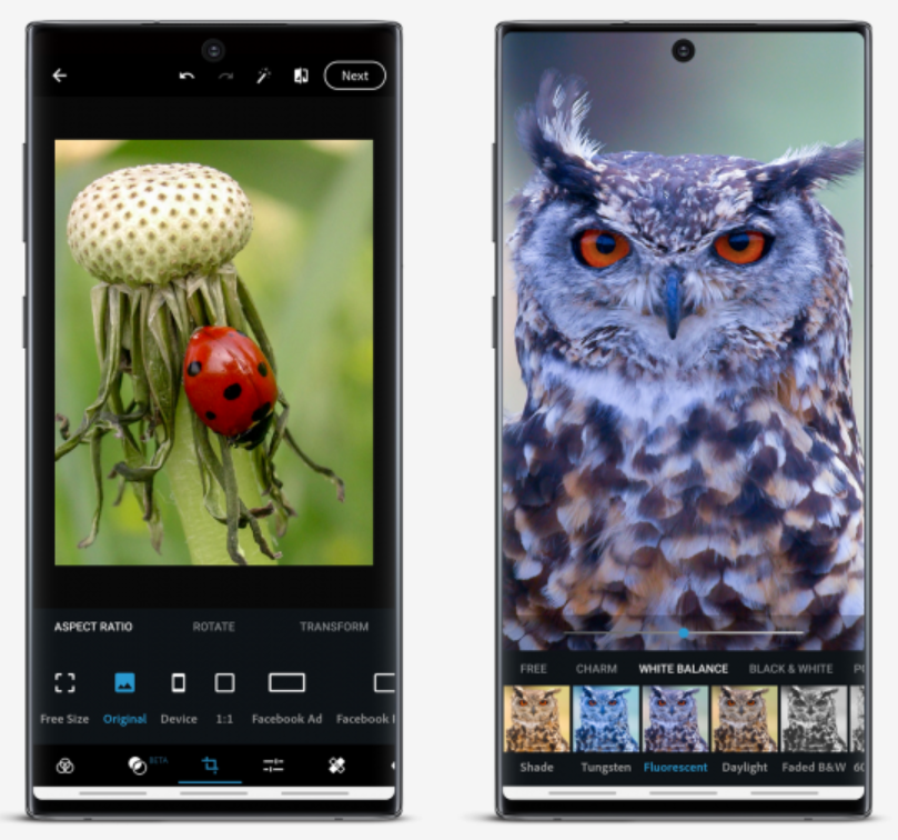 One of the most useful features of Photoshop Express is its perspective correction tool. With just a tap, you can instantly fix crooked images and correct distorted camera angles, giving your photos a professional, polished look.