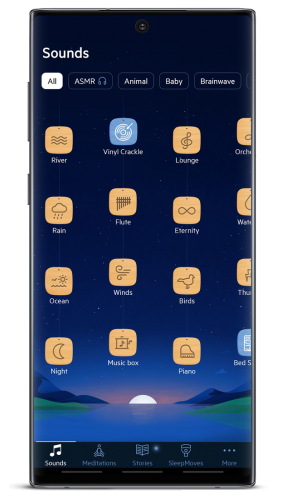 Explore our selection of over 100 soothing sounds, music, beats, and tones designed specially by our in-house experts to lull you to sleep. Mix them together to create your very own soundscapes: